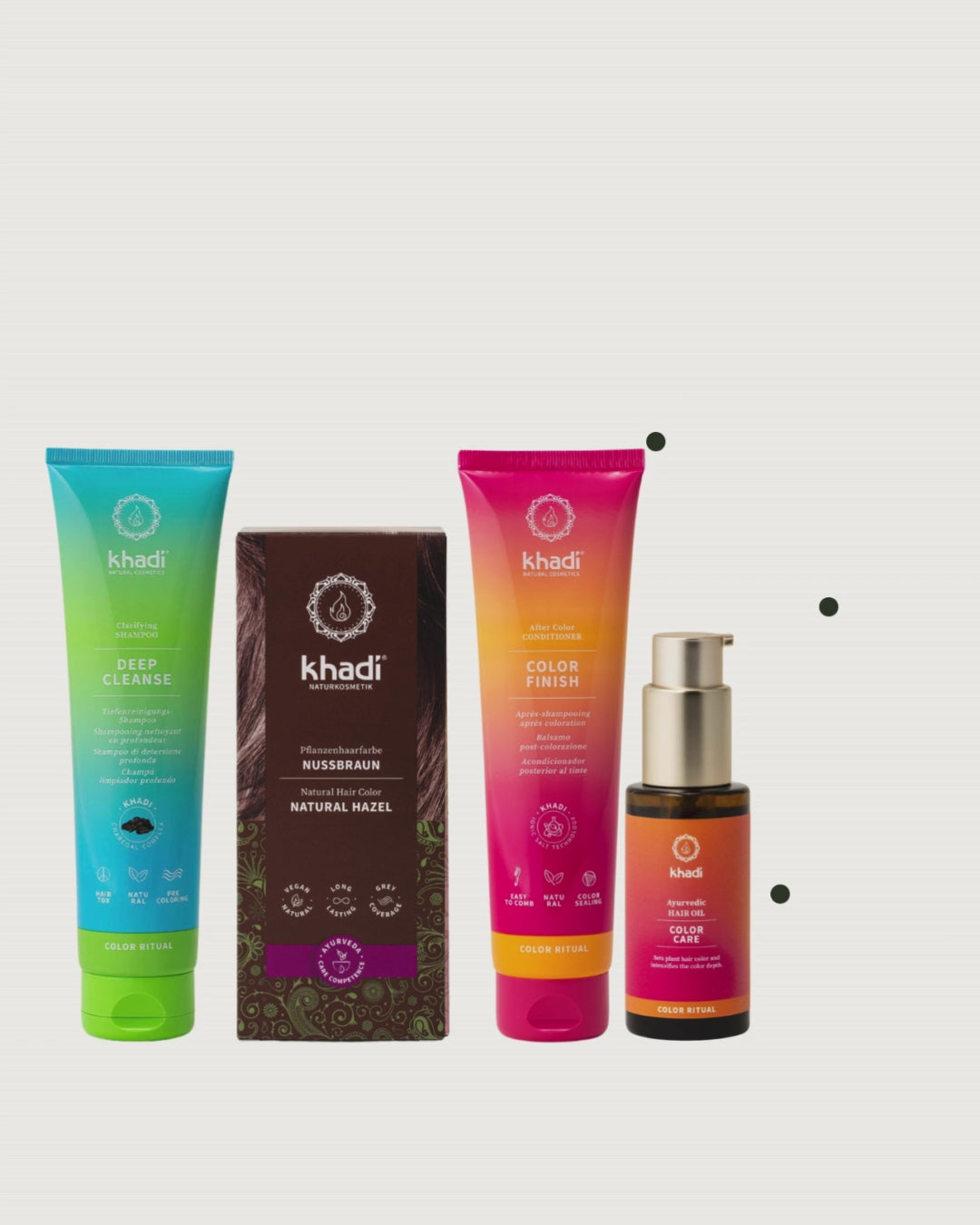 Der khadi ColorCycle begleitet Dich vor, während und nach der Färbung – mit Tiefenreinigung, Pigmentierung und nährender Pflege für maximale Farbbrillanz.