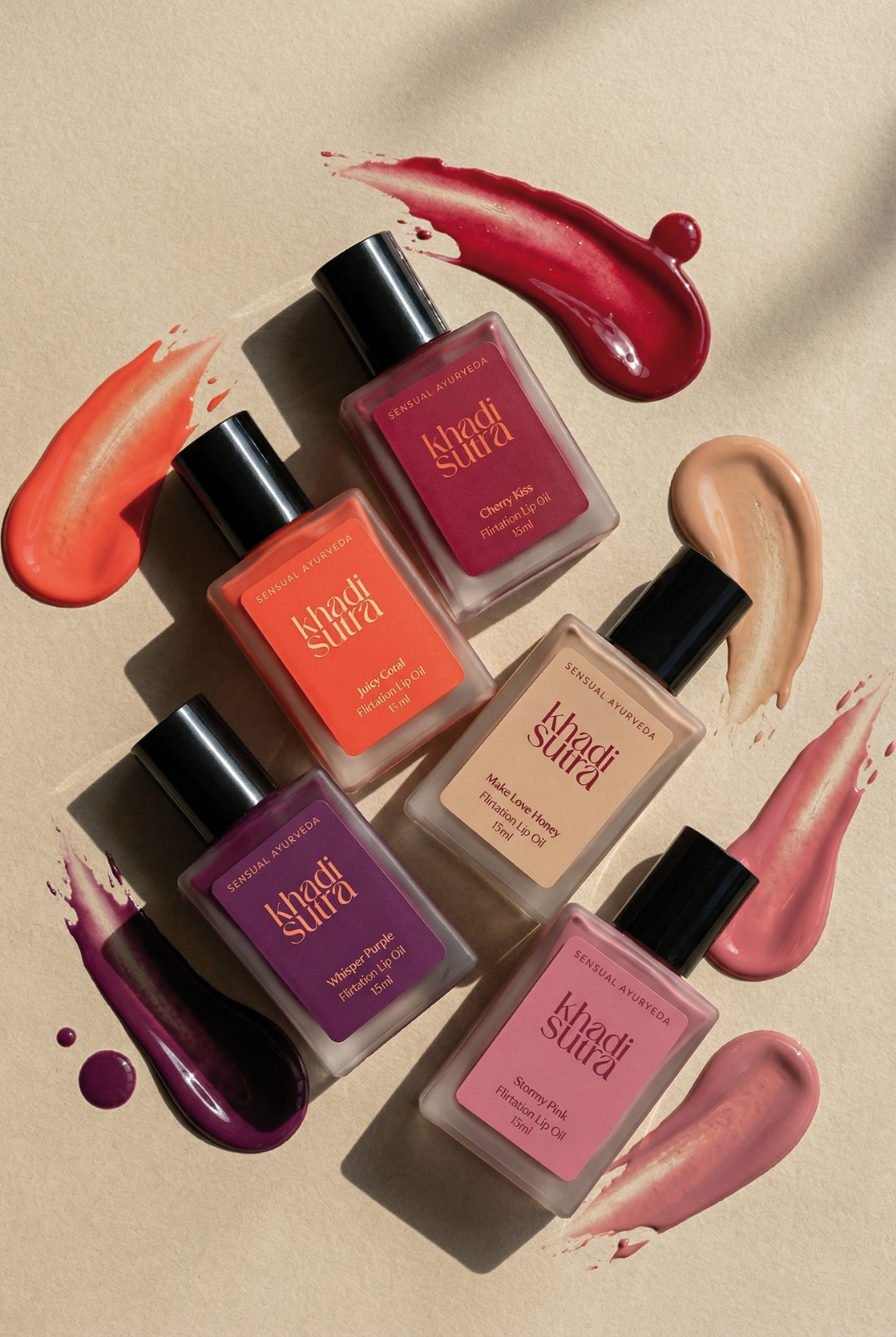 Spüre die Magie eines Augenblicks, der nach Nähe verlangt: Das Love & Glow Duo vereint das transparente khadi sutra Lip Oil Make Love Honey mit einem getönten khadi sutra Lippenöl in Deiner Wunschnuance – für Lippen, die berühren und verführen.