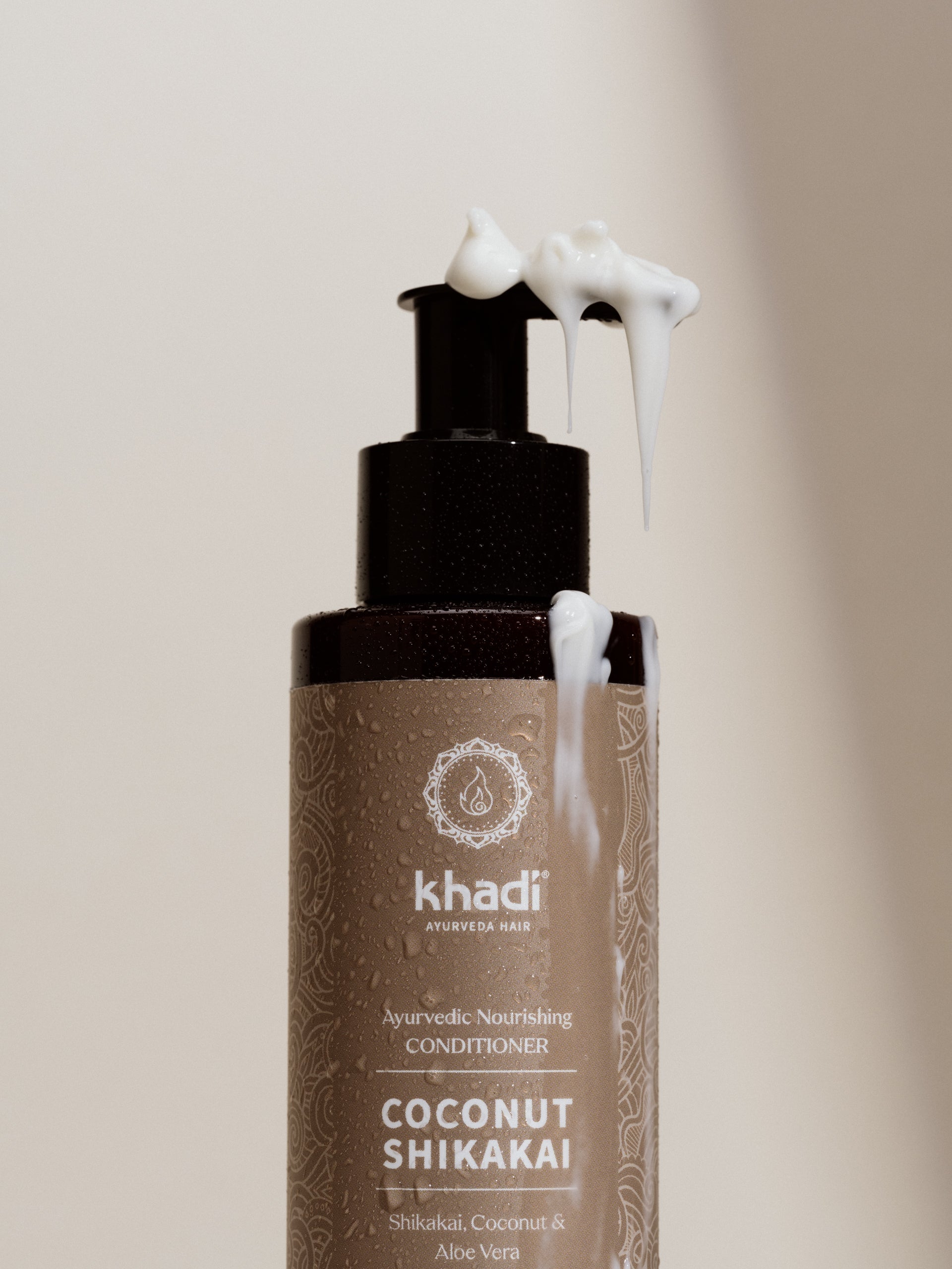 Das einzigartige Wirkgeheimnis von Coconut Shikakai beruht auf dem Ayurvedischen khadi Shikakai Elixier, einem hochkonzentrierten Extrakt aus handverlesenen Ayurvedischen Heilpflanzen. Das Shikakai Elixier basiert auf einer traditionell Ayurvedischen Wirkstoffkombination aus Kräutern, Rinden und Früchten. Diese werden von uns nach dem Ayurvedischen Herstellungsprinzip sanft eingekocht und gerührt, bis sich darin die magischen Heilkräfte der Natur potenzieren – im Ayurveda wird dieser „Zaubertrank“ medizinierte Dekokte genannt. Der Anteil des khadi Shikakai Elixiers in Deinem Conditioner beträgt bis zu 20 % gegenüber nur 2-5 % Wirkstoffanteil bei herkömmlichen Naturkosmetik Conditioner.