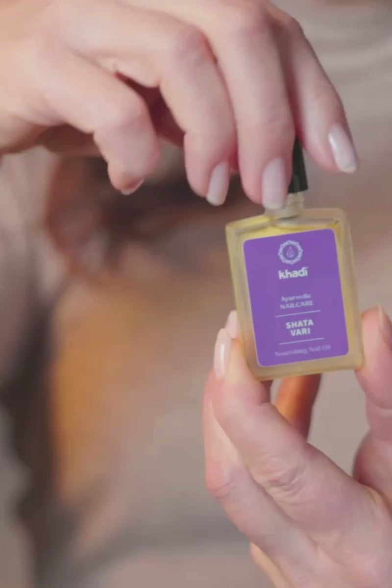 Ayurvedische Pflege für starke, elastische Nägel und zarte Nagelhaut: Das khadi Shatavari Nourishing Nail Oil vereint die Kraft kostbarer kaltgepresster Pflanzenöle mit einem Ayurvedischen Heilkräuter-Elixier aus 7 Kräutern und Wurzeln, wie Shatavari, Ashwagandha, Amla und indische Malve.