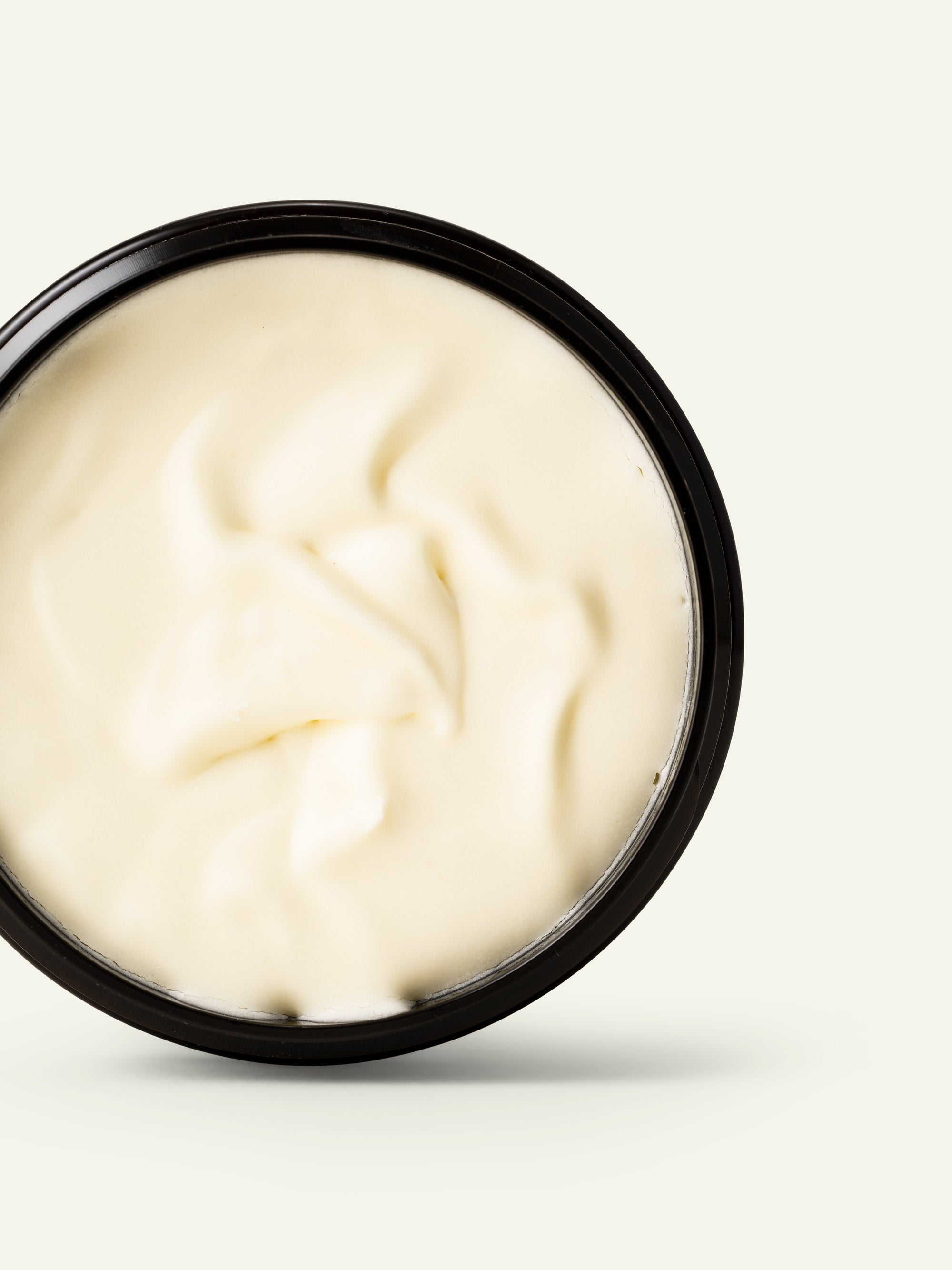 Ihre soft-feste Textur liegt kühl auf der Haut, zieht schnell ein und hinterlässt ein samtiges Finish – ohne zu fetten. Kein „Whipped“, kein Schwergefühl – sondern wie ein Hauch von Pflege, der mit Deiner Haut verschmilzt.