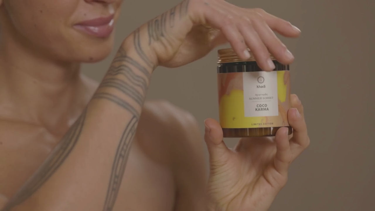 Zartschmelzend wie Sorbet, duftend wie ein warmer Tag am Strand: Die limitierte Summer Edition der Ayurvedic Body Butters verbindet wirksame Pflege mit dem Gefühl eines niemals endenden Sommers. Angereichert mit nährender Sheabutter, cremiger Kakaobutter und feinen Ölen verschmilzt das Coco Karma Summer Sorbet sanft mit der Haut, spendet intensiv Feuchtigkeit und regeneriert sonnenbeanspruchte Partien – der Teint wirkt glatter, geschmeidiger und erhält einen sanften Glow.